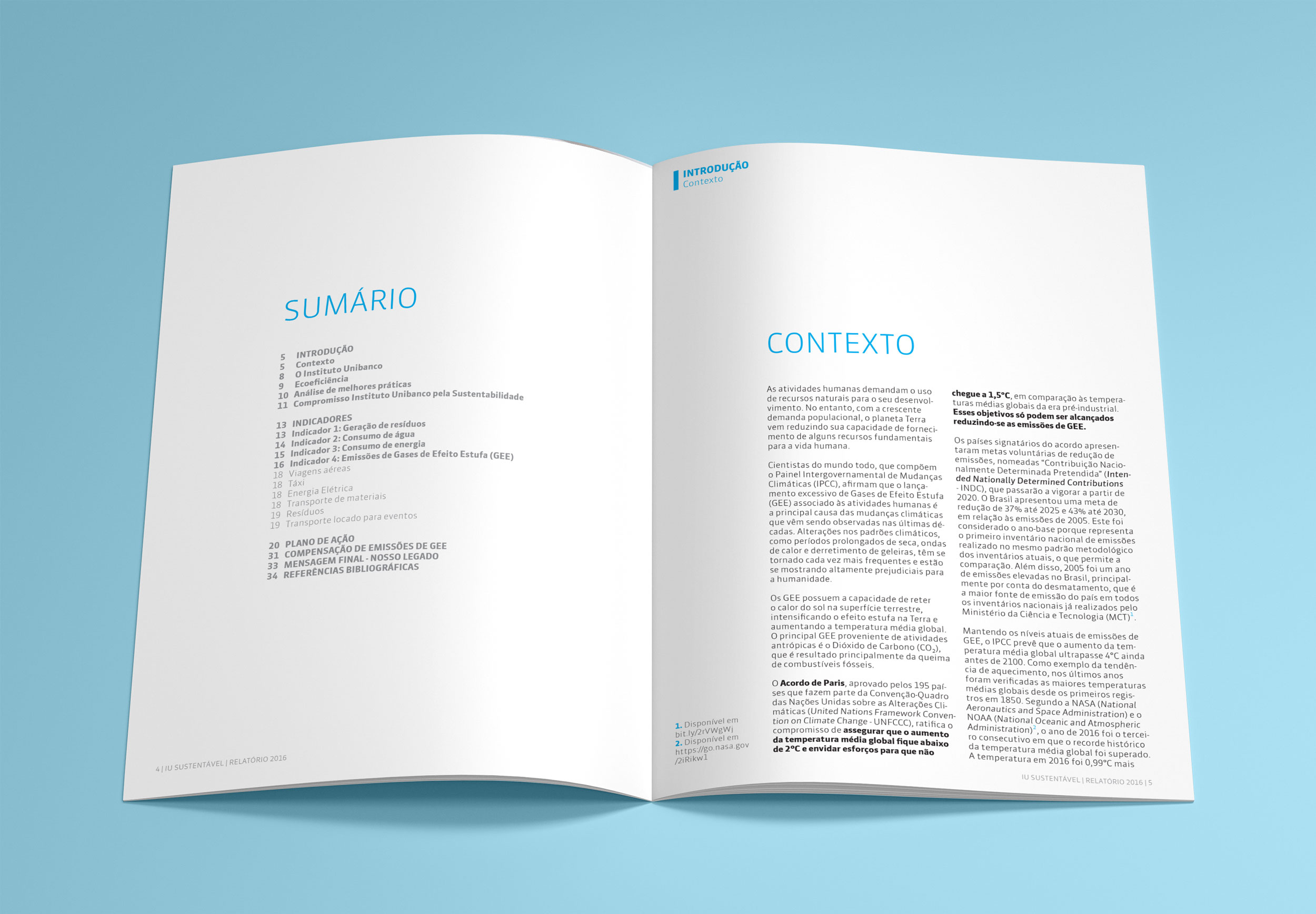 Projeto gráfico e diagramação do Relatório de Sustentabilidade do Instituto Unibanco.